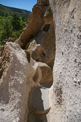 Bandelier erreicht man über den Highway 4 in der Nähe von Los Alamos, nord-westlich von Santa Fe. Parken kann man nur am Visitor Center und erkundet dann den Park zu Fuss.